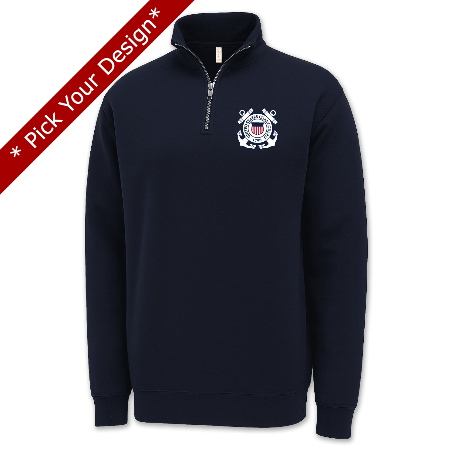 Show your Coast Guard pride your way with our Pick Your Design 1/4 Zip Sweatshirt! Choose from a variety of bold, Coast Guard-inspired designs and multiple classic colors to find the perfect fit for your style. Whether you're honoring service, celebrating heritage, or simply showing support, this shirt offers the freedom to express your pride how you want.