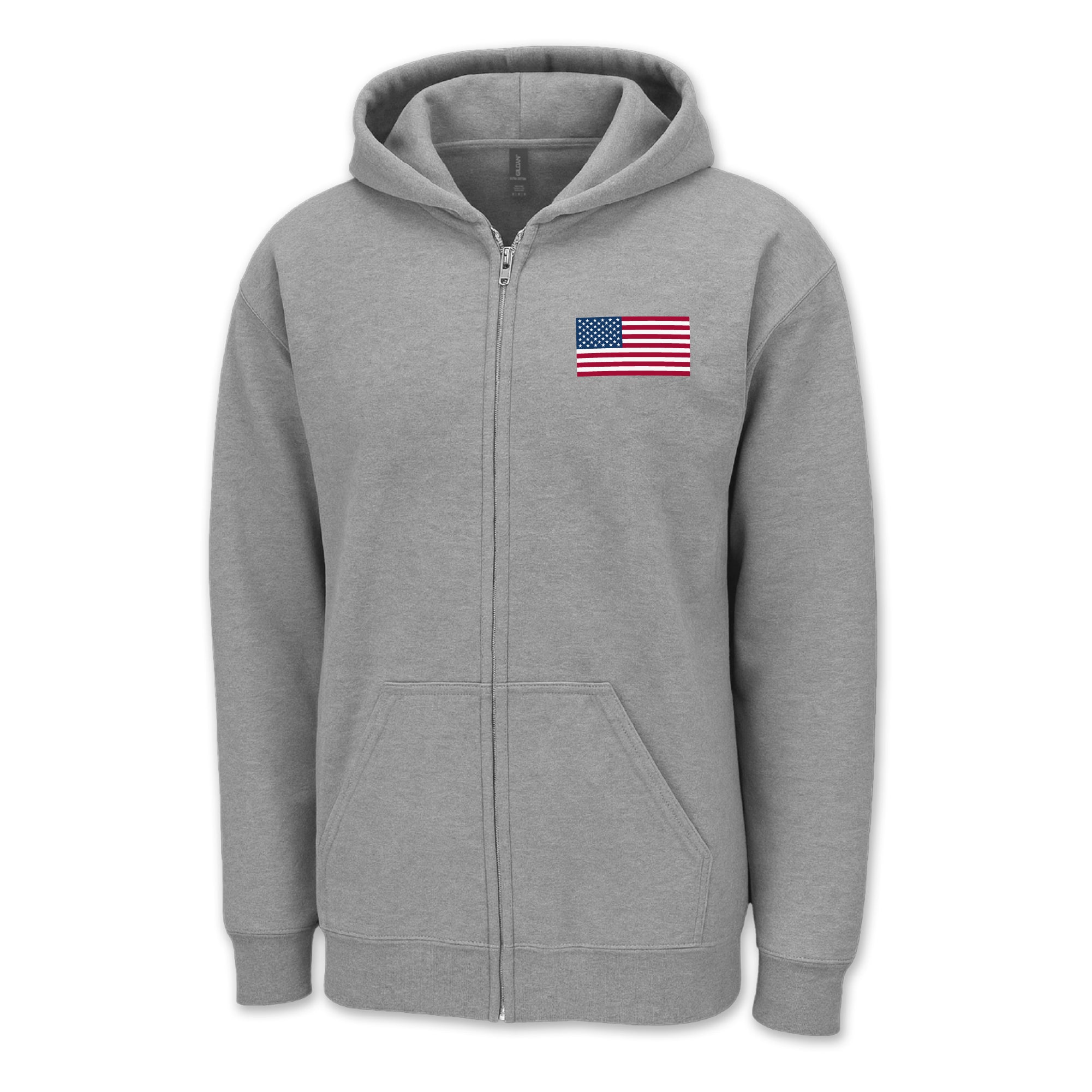 Layer up with pride in the USA Flag Left Chest Full Zip — made from soft, midweight fabric and finished with a clean American flag graphic on the chest. Perfect for showing your patriotism in classic, everyday comfort.