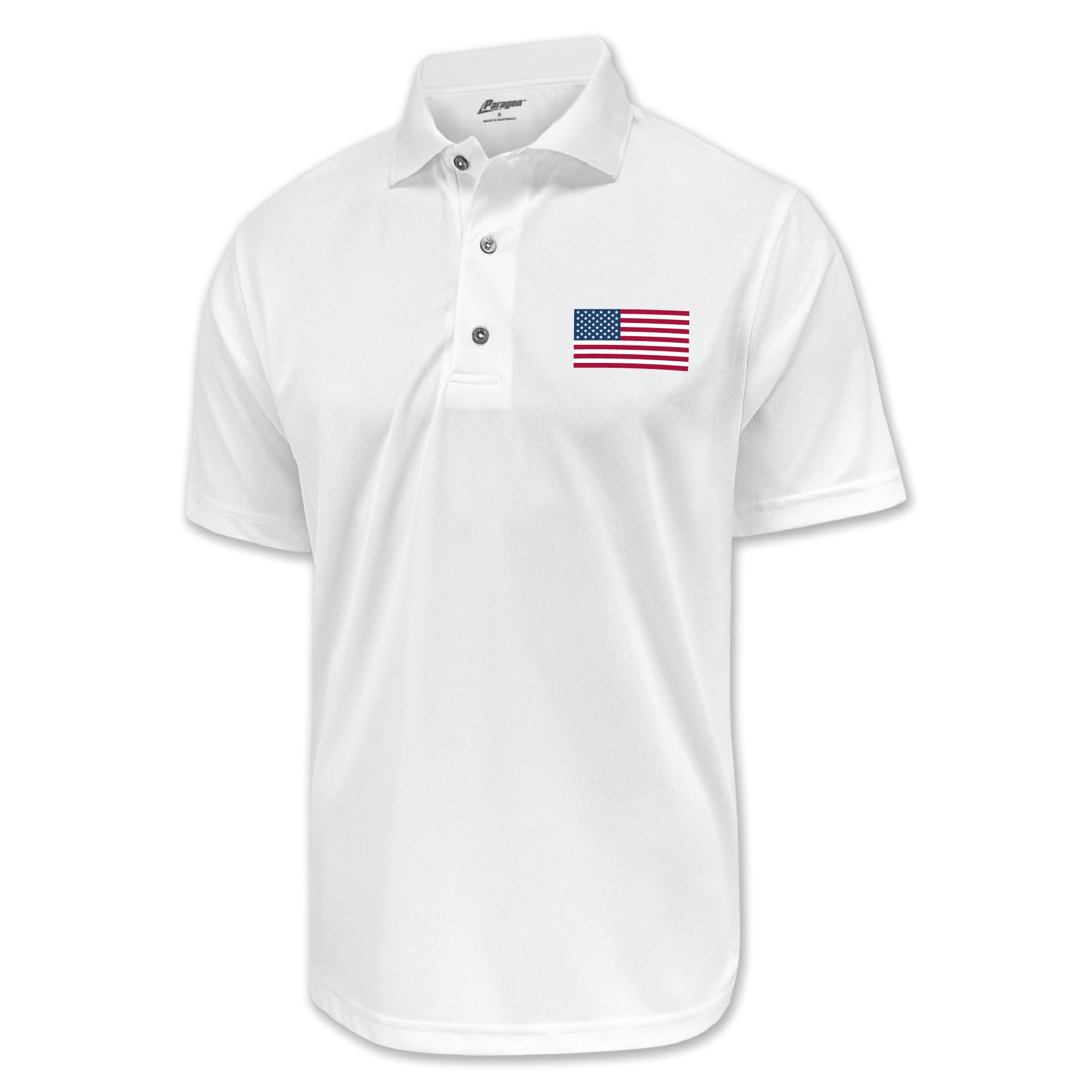 Show your patriotic pride in the USA Flag Performance Polo — crafted with moisture-wicking, breathable fabric and a sleek fit for all-day comfort. Finished with a bold flag design, it’s perfect for the course, the office, or any day in red, white, and blue.