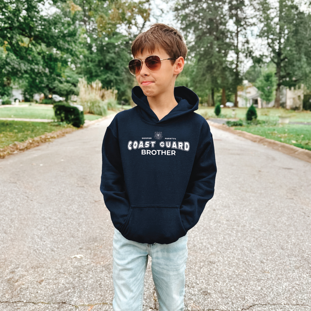 Show everyone how proud you are to represent your sibling in the Coast Guard with the Coast Guard Brother Youth Hood!