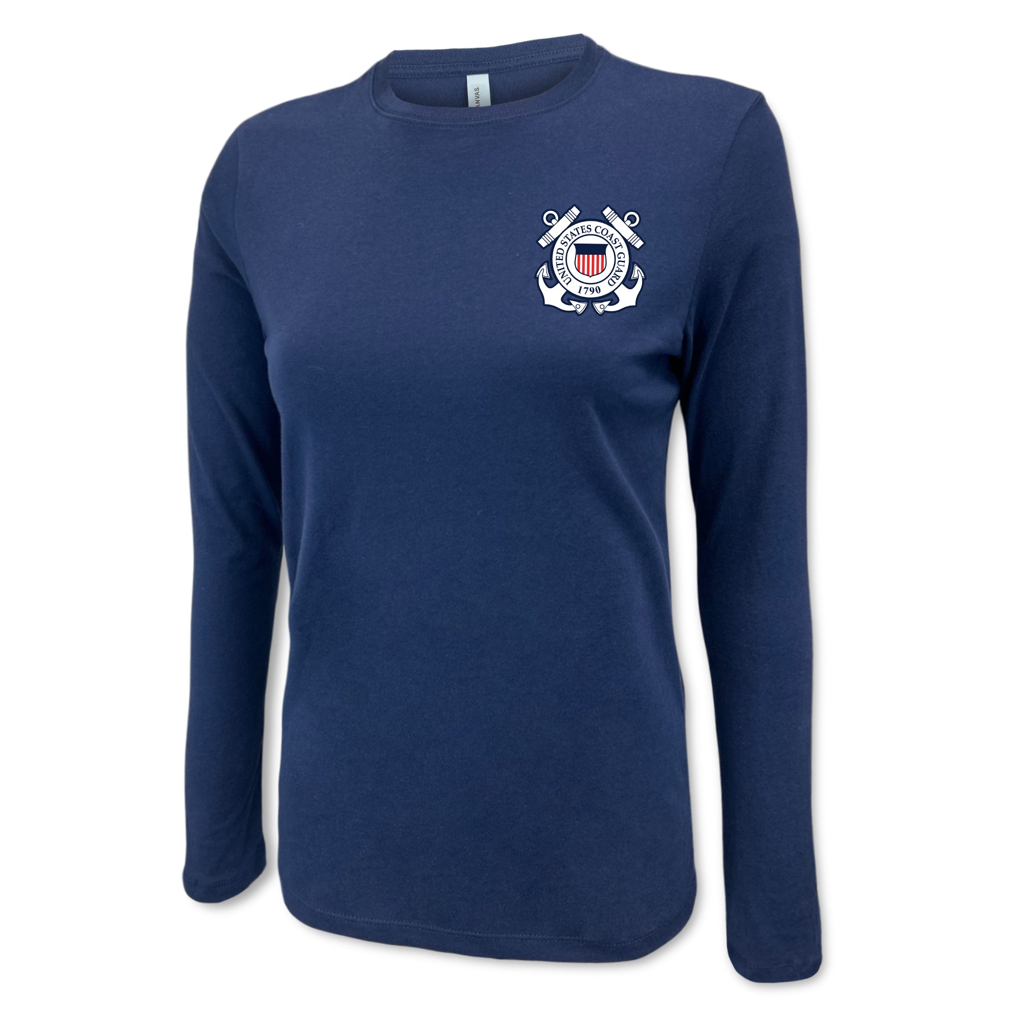Pick Your Design Coast Guard Ladies Long Sleeve T-Shirt (Navy)